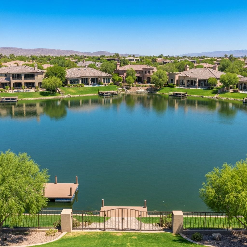 Upscale gated community near Tempe Town Lake with townhomes and single-family homes. HOA restrictions apply to moves.