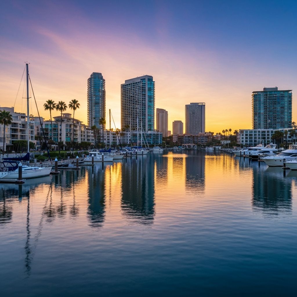 Adjacent marina with luxury waterfront condos and yacht clubs