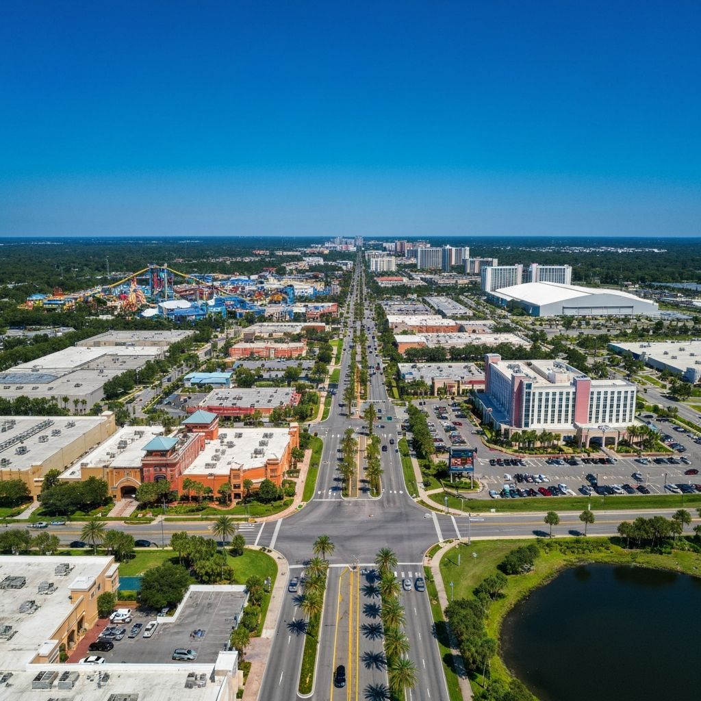 High-density residential area adjacent to Universal Orlando Resort. Mix of hotel-style condos, apartment towers, and short-term rental properties.