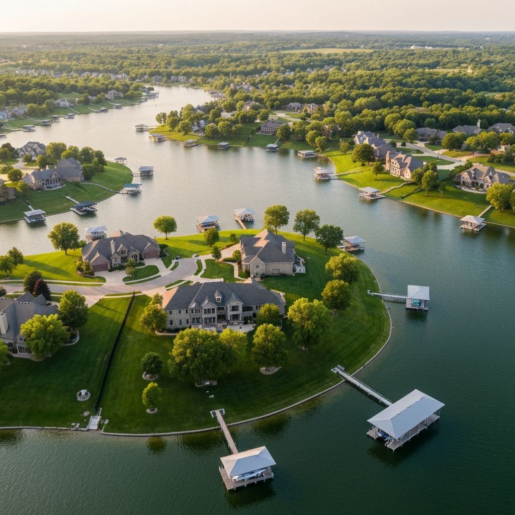 Private docks, lakefront access, and custom estates on the 168-acre private lake