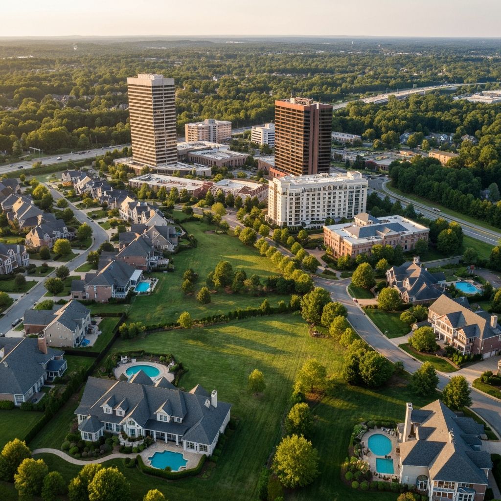 Charlotte's premier shopping and business district 5 miles north of Ballantyne. SouthPark Mall, luxury high-rises, and established neighborhoods. Common relocation destination for Ballantyne corporate workers upgrading to urban-adjacent living.