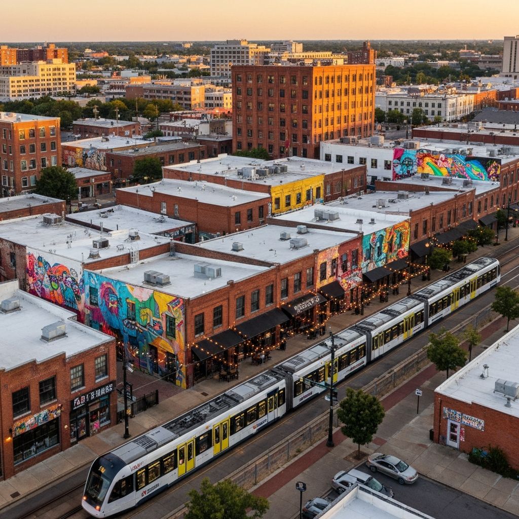 NoDa — short for North Davidson — is Charlotte's most vibrant arts and entertainment district. Once a thriving textile mill village in the early 1900s, NoDa has transformed into a nationally recognized creative hub centered on North Davidson Street, known for its colorful murals, independent galleries, live music venues like Neighborhood Theatre and Evening Muse, craft breweries, and eclectic dining.