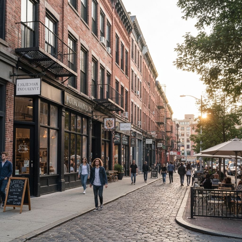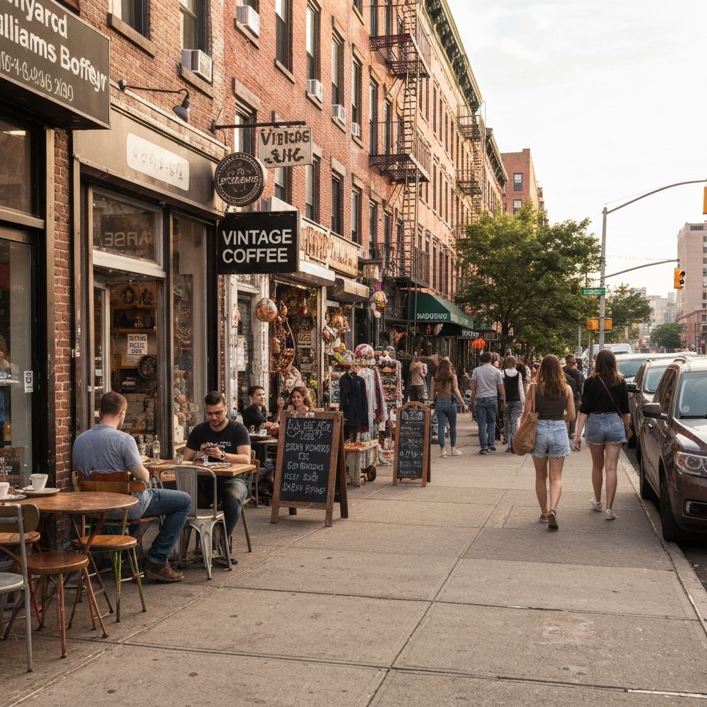 Bedford Avenue corridor with trendy shops, cafes, and converted lofts