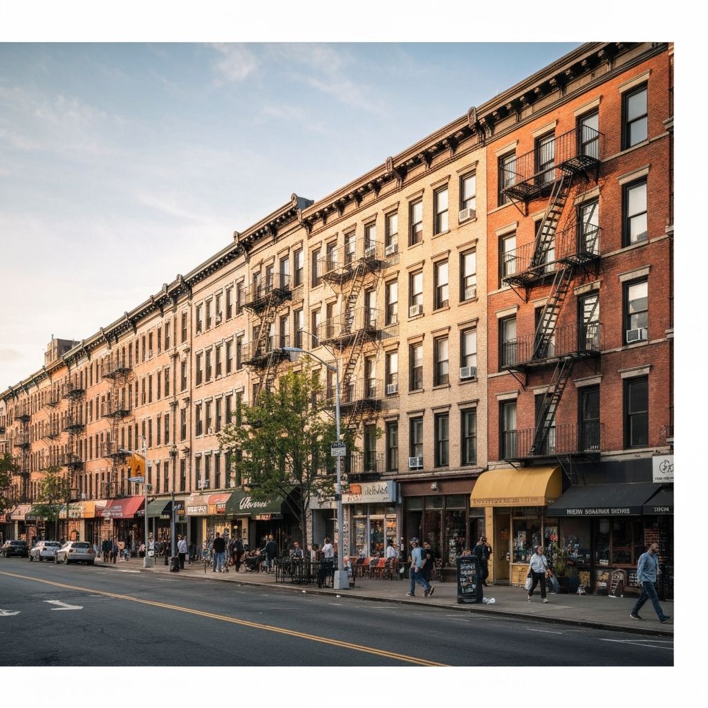 Mixed-use buildings and walk-ups along Grand Street commercial corridor