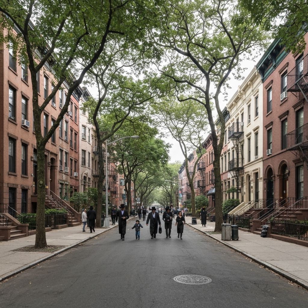 Historic Hasidic community area with family homes and apartments