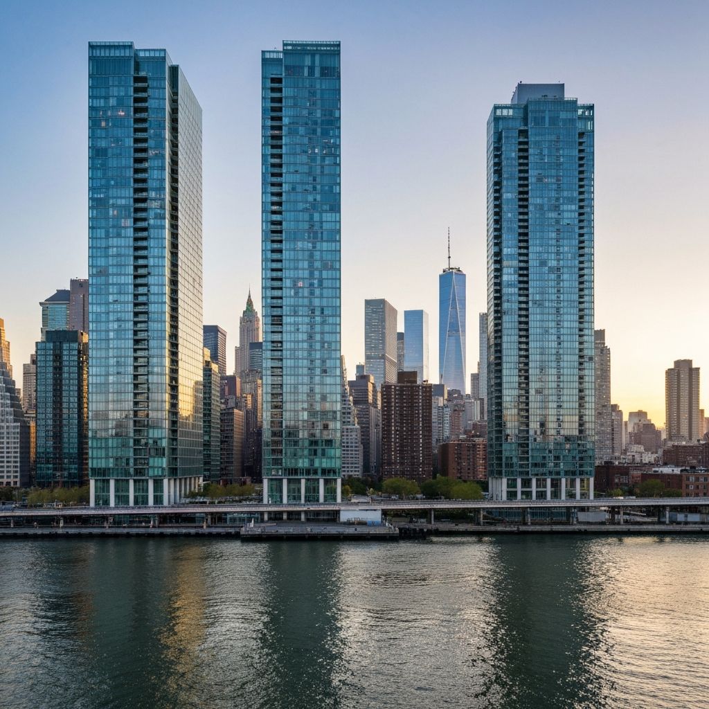 Luxury high-rises along East River with Manhattan skyline views