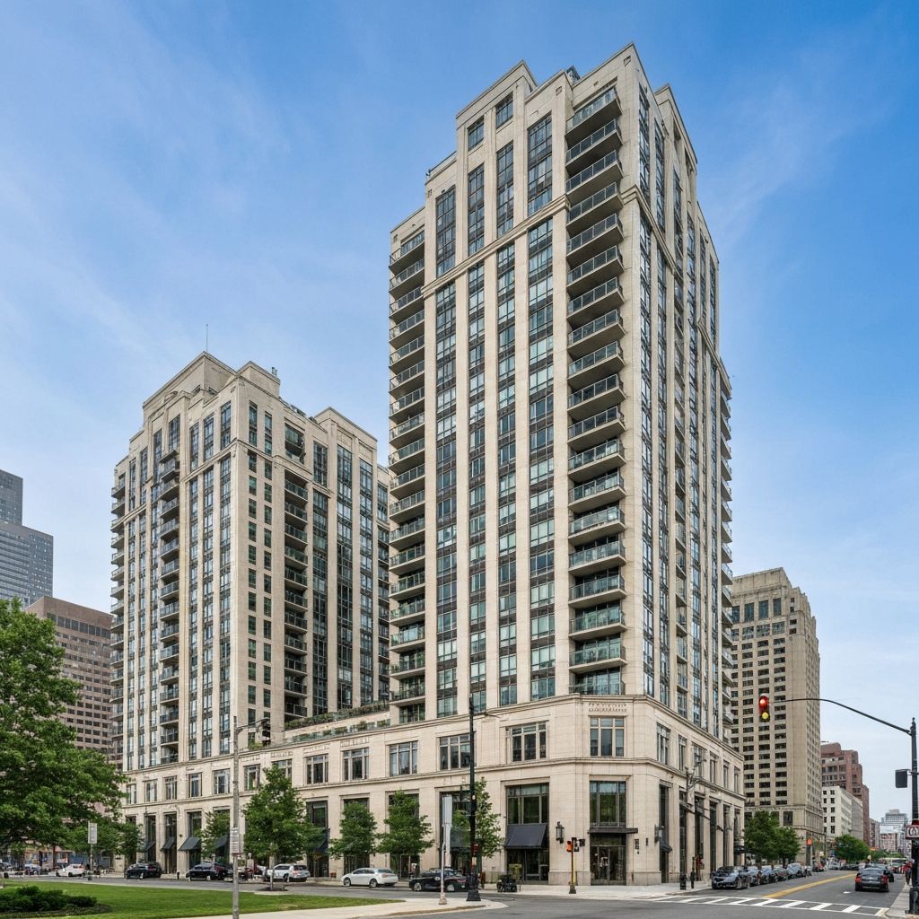 Iconic skyline tower with luxury condos. Specialized high-rise moving with building protocol expertise.