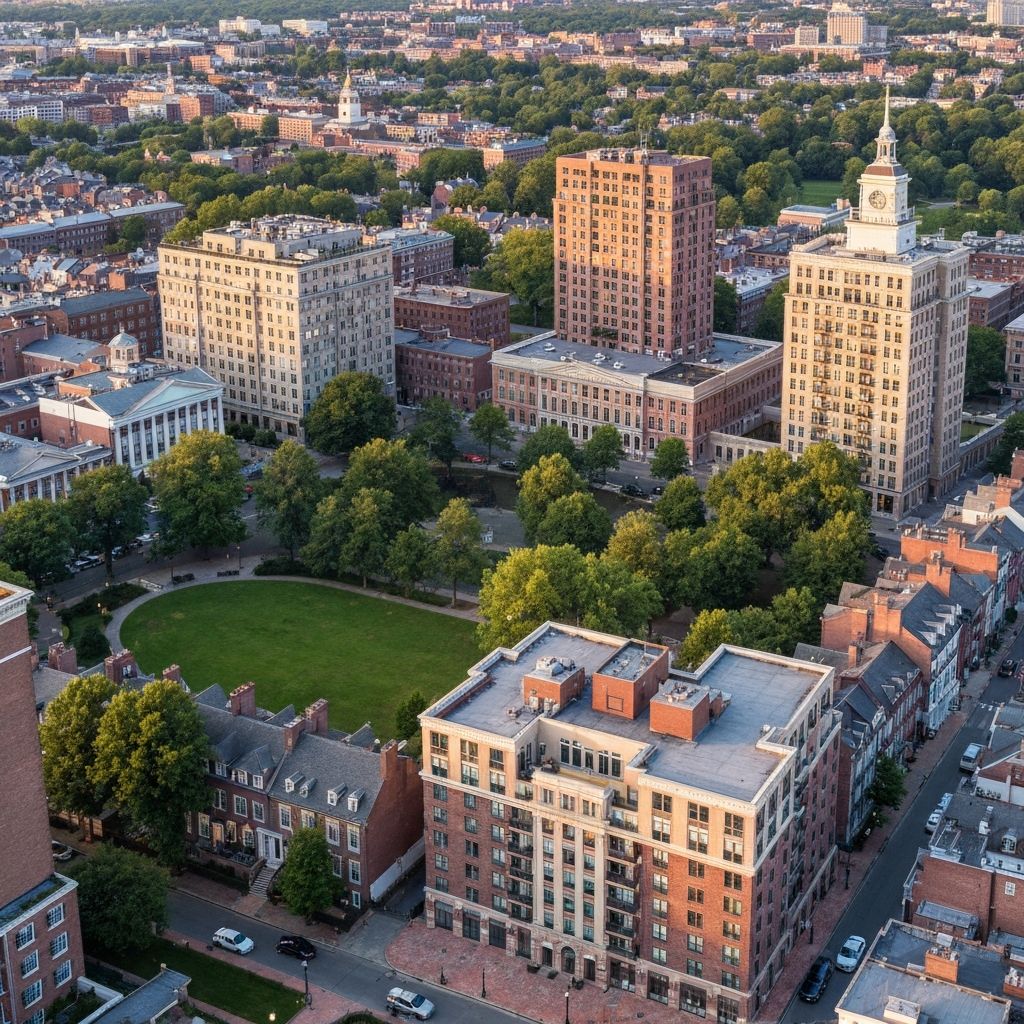 Society Hill architectural diversity spans Federal style townhouses (1780-1830) with symmetrical facades, fanlights over doors, and decorative cornices, Georgian colonial homes (1700-1780) featuring paneled doors and brick construction, Victorian brownstones (1850-1900) with bay windows and ornate ironwork, mid-century Society Hill Towers (1964) by I.M. Pei offering modern high-rise living, converted carriage houses with unique access challenges, and modern Washington Square condos built 1990s-2020s with standard dimensions but historic district parking restrictions.