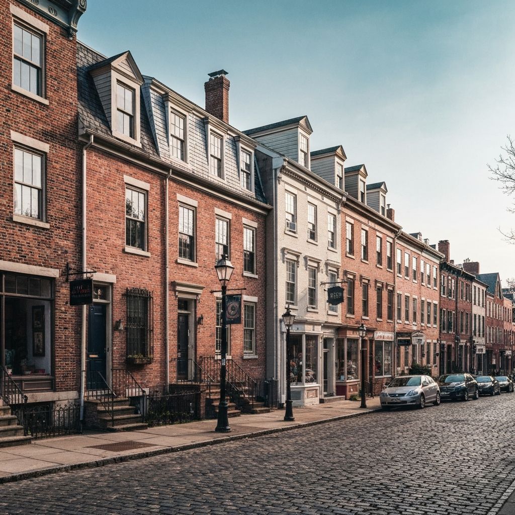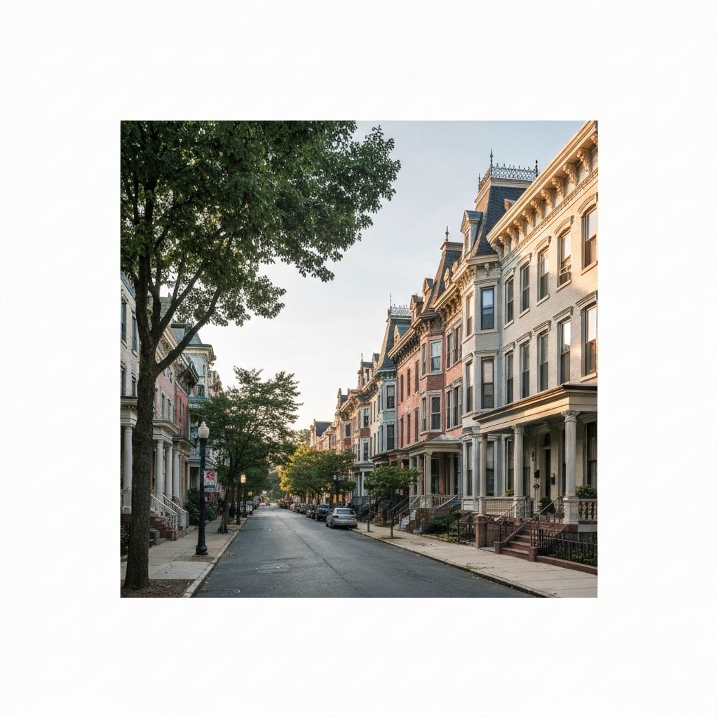 Charming historic neighborhood with Victorian row homes, Italian heritage, and residential charm.