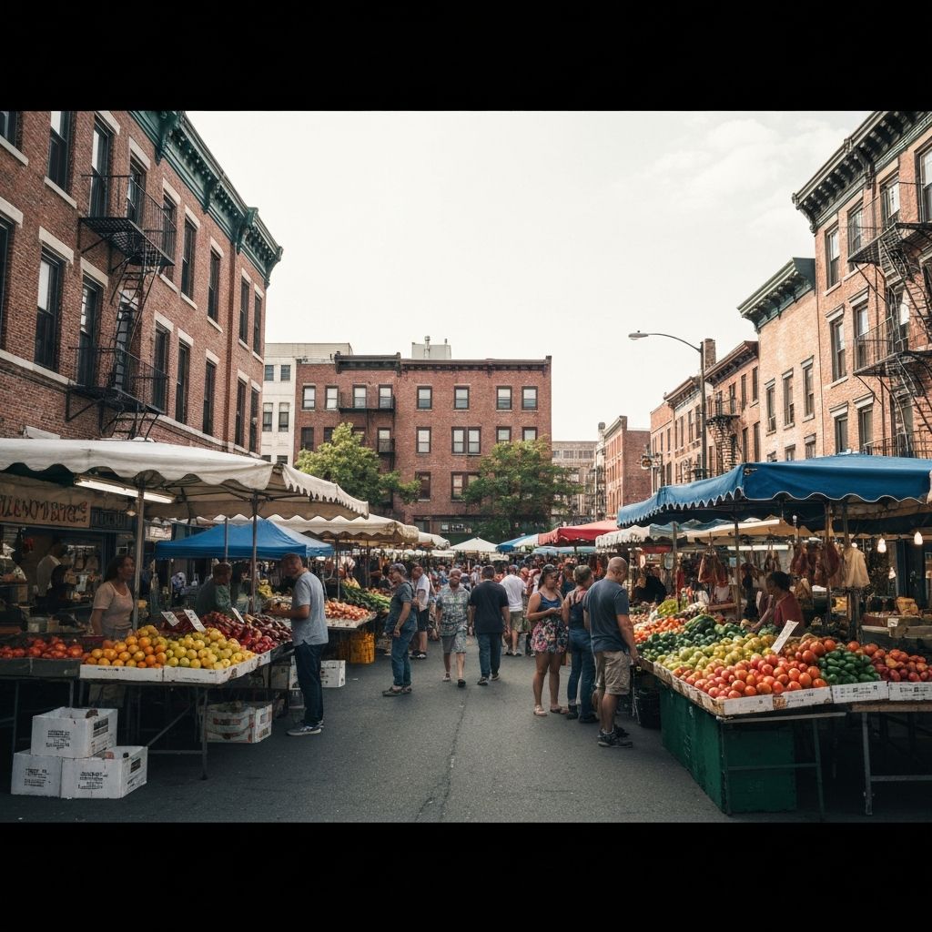 Iconic 9th Street corridor with historic row homes, outdoor vendors, and authentic South Philly character.