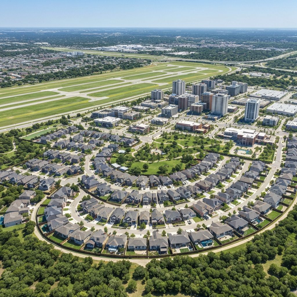 Master-planned community on former airport land. Modern homes, parks, and retail with HOA coordination expertise.