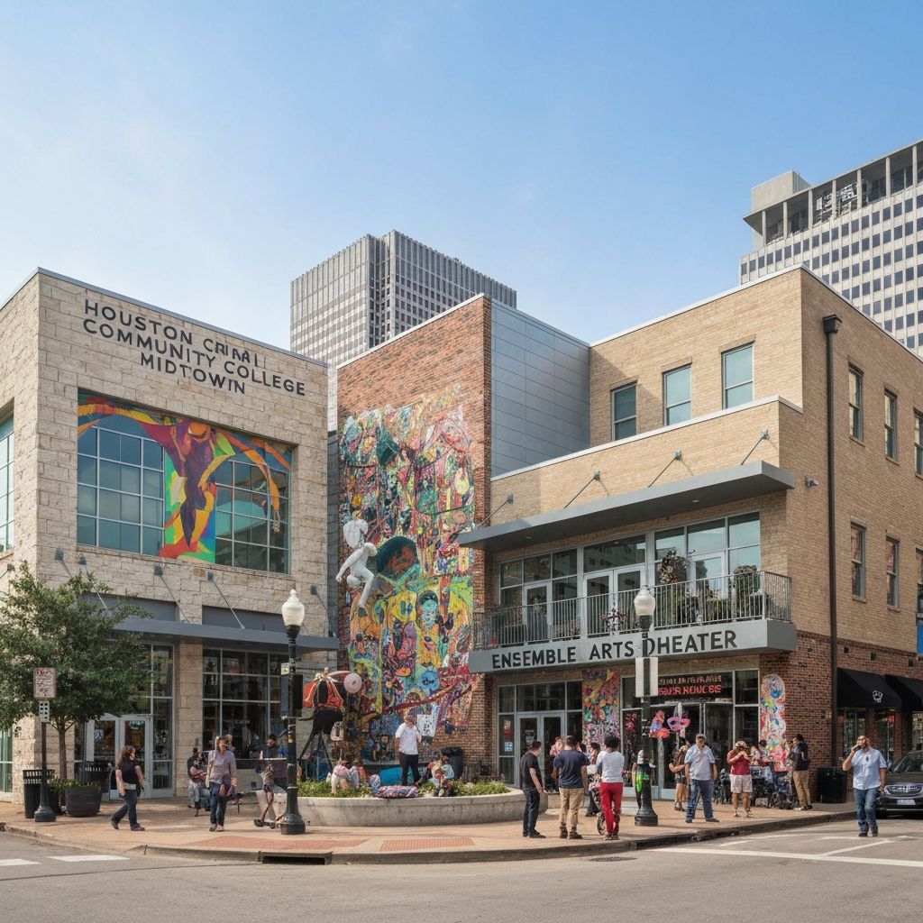 Apartments near theaters and Houston Community College. Cultural district moving for arts-focused residents.
